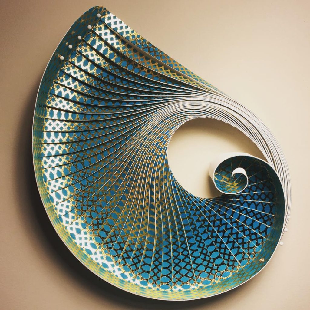 I create sculptural artwork from paper and paper-like materials. My basic process involves cutting a 2-dimensional material into slender strips at specific angles and leaving a “spine” or “base” intact. From there I weave and layer the strips into a multitude of anamorphic, curvy, organic shapes. Most pieces are created from just one continuous sheet of paper. I developed all the techniques myself through many hours of experimentation and following my curiosity.
